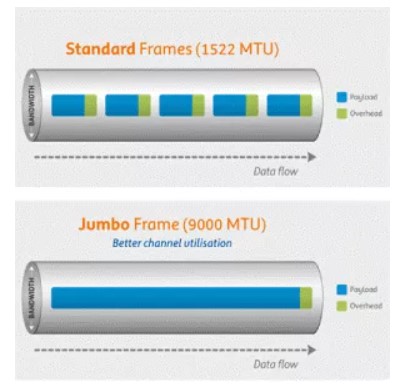 巨型幀可為本地網絡提供一些好處,可以加快整體網絡速度,在某些應用程序質檢提供更好的交互,并減少網絡壓力。