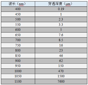 在高純度的晶體形式中,相鄰的硅原子彼此共價鍵合,打破這些鍵以產生電子-空穴對需要大于帶隙能量的能量。入射光的波長與光子吸收的深度直接相關,并且波長越短,進入硅的深度也就越短。