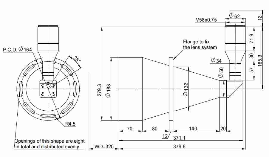 TTL44系列標(biāo)準(zhǔn)雙遠心鏡頭標(biāo)準(zhǔn)M58接口,最大兼容44mm(對角線44mm)靶面工業(yè)相機。