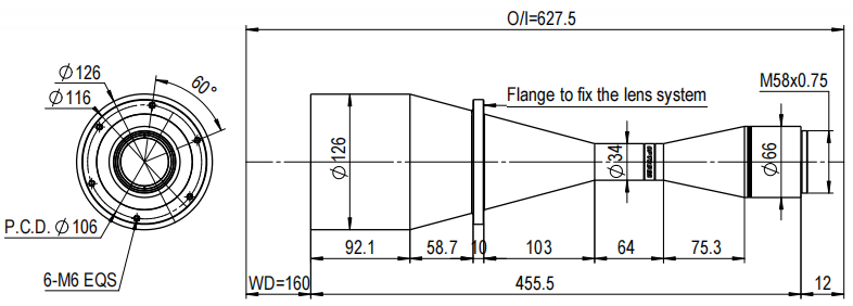 TTL39.2系列標準雙遠心鏡頭標準F接口或M58接口,最大兼容39.2mm(對角線39.2mm)靶面工業相機。